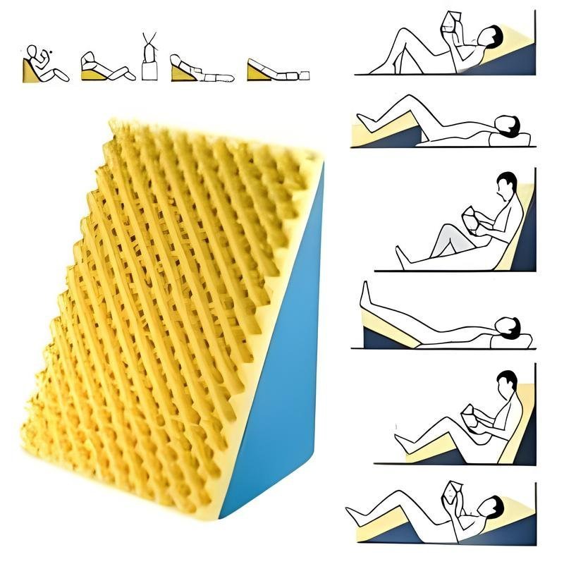 Fabricada em espuma de alta densidade, oferece excelente sustentação, mantendo o formato mesmo com o uso contínuo. Seu design em formato triangular permite elevar pernas, costas ou tronco, favorecendo a circulação sanguínea, auxiliando na respiração e prevenindo desconfortos causados pela permanência prolongada em uma mesma posição.