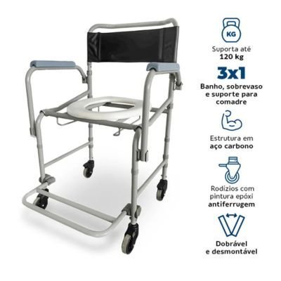 Uma solução versátil e prática para auxiliar no banho e higiene de pessoas com dificuldade de locomoção. Com estrutura em aço carbono, ela oferece resistência e durabilidade.