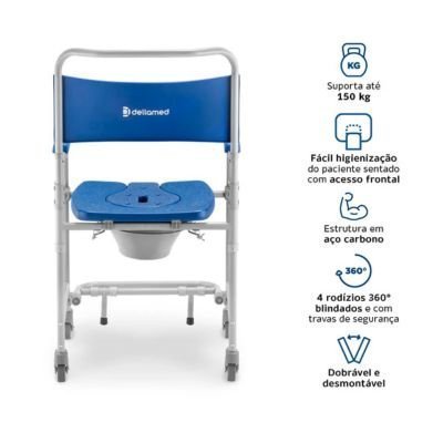 A cadeira de banho Dellamed D45 é um modelo projetado para oferecer segurança e praticidade no auxílio a pessoas com mobilidade reduzida durante o banho e o uso do sanitário.