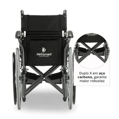 A cadeira de rodas Dellamed D400 é um modelo resistente, ergonômico e seguro, projetado para adultos e idosos.
